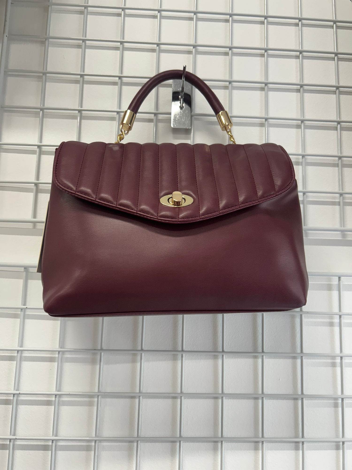 Bolso de mano de piel sintética en color burdeos con cierre dorado.